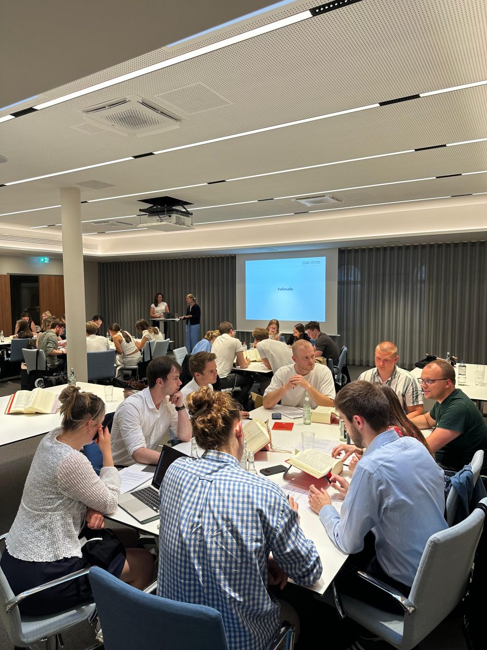 Im Anschluss ging es in die Anwendung: In einer Fallstudie arbeiteten die Teilnehmenden in Gruppen an drei praxisnahen Fällen, präsentierten ihre Lösungen und diskutierten diese mit ihren Kolleg*innen. Im Fokus standen dabei Fragestellungen aus dem Kaufgewährleistungsrecht und dem Produkthaftungsgesetz.