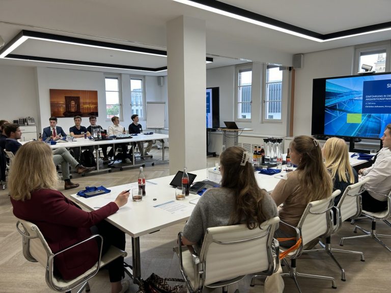 Im Juli dieses Jahres durften unsere Mitglieder gemeinsam mit einigen Mitgliedern aus Bayreuth erneut bei der internationalen Wirtschaftskanzlei Sidley Austin (CE) LLP zu Gast sein. Bei einem Vortrag mit anschließenden Get-together konnten wir so wertvolle Eindrücke im Bereich Finance gewinnen. Thema des Vortrags von Managing Associate Christian Axhausen war dieses Mal die Akquisitationsfinanzierung bei M&A Transaktionen.